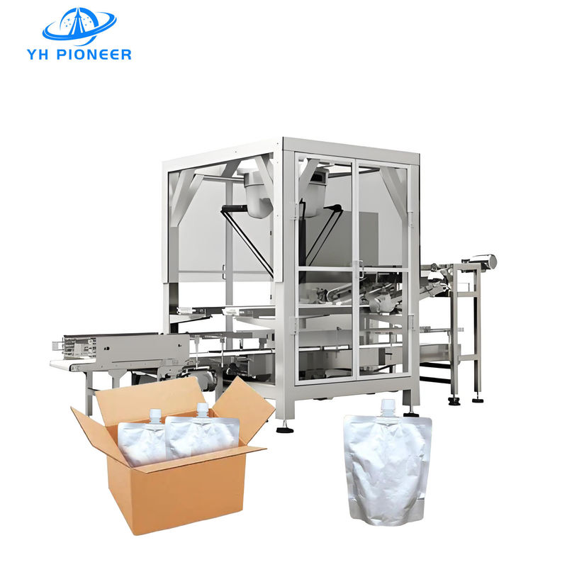 Wir stellen professionelle Pouches Carton Packer Machine zur Verfügung, die Waren genau und effizient stapeln und arrangieren kann, was die Betriebseffizienz von Lager und Logistik erheblich verbessert.